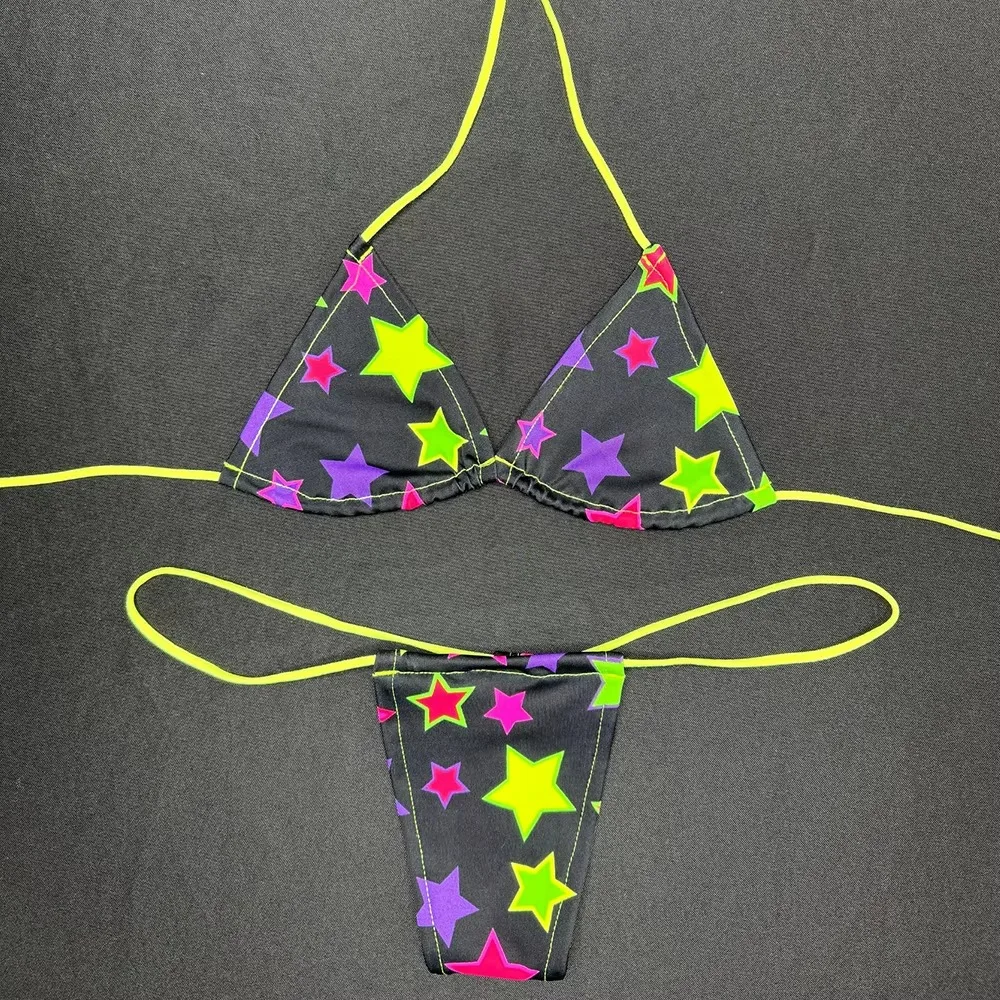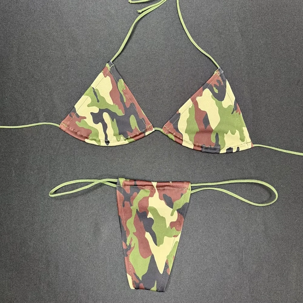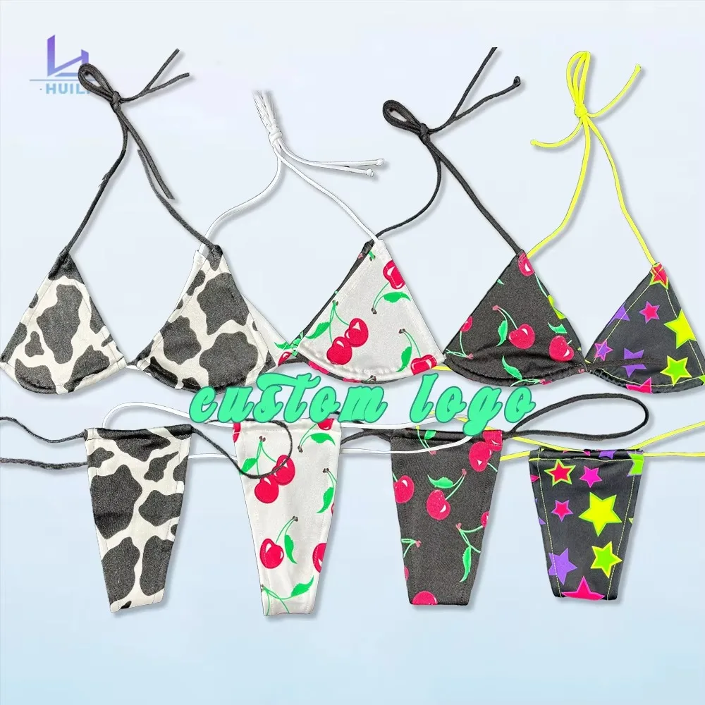 Huili OEM High Quality Designer Micro Swimwear Manufacturer Women's Thong Two Piece Beachwear Custom Print Bikini Set